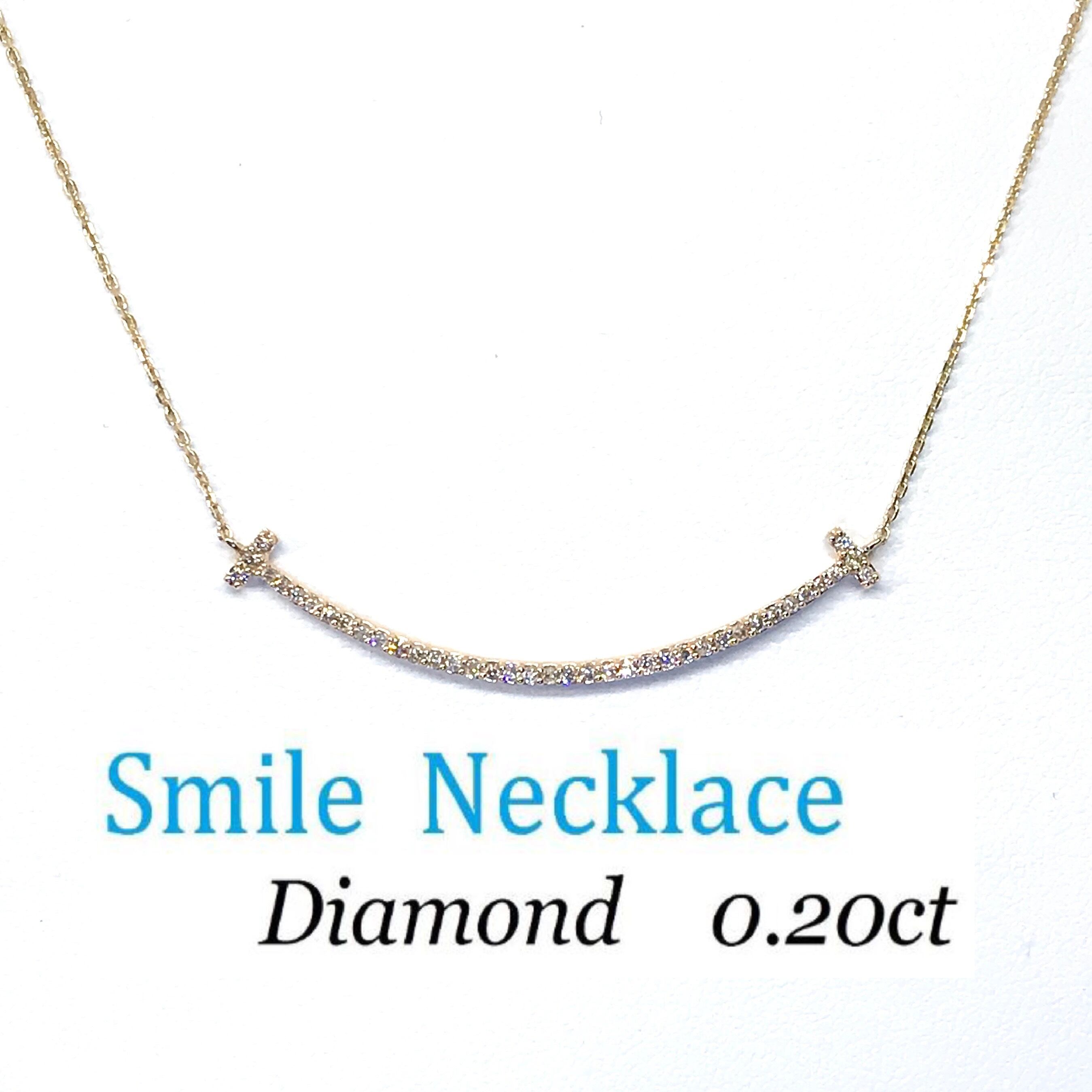 新品♡K18ピンクゴールド【スマイル ネックレス】ダイヤ0.2カラット