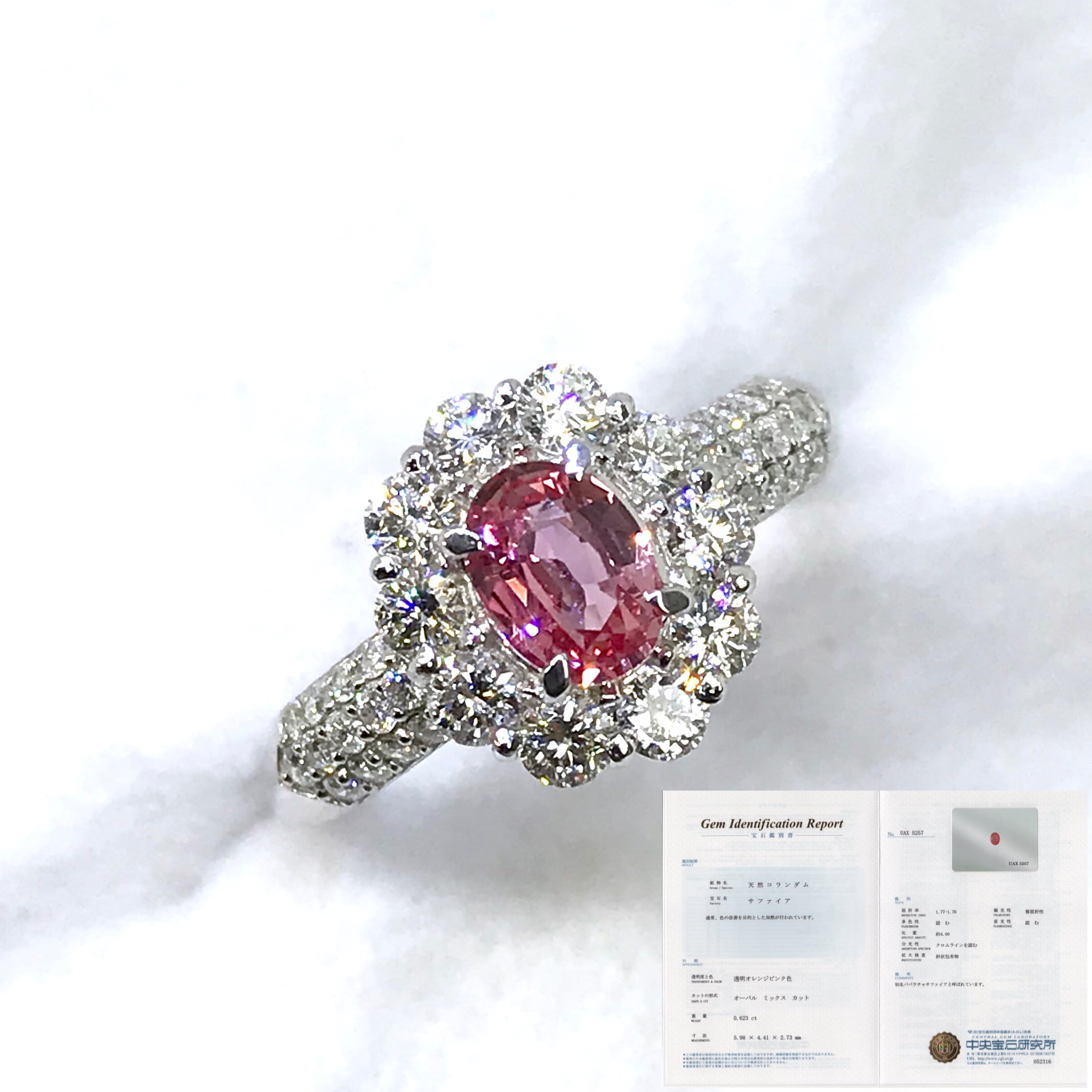 新品【パパラチア】超高品質!VSクラスのオレンジピンク 鑑別書 プラチナ製リング