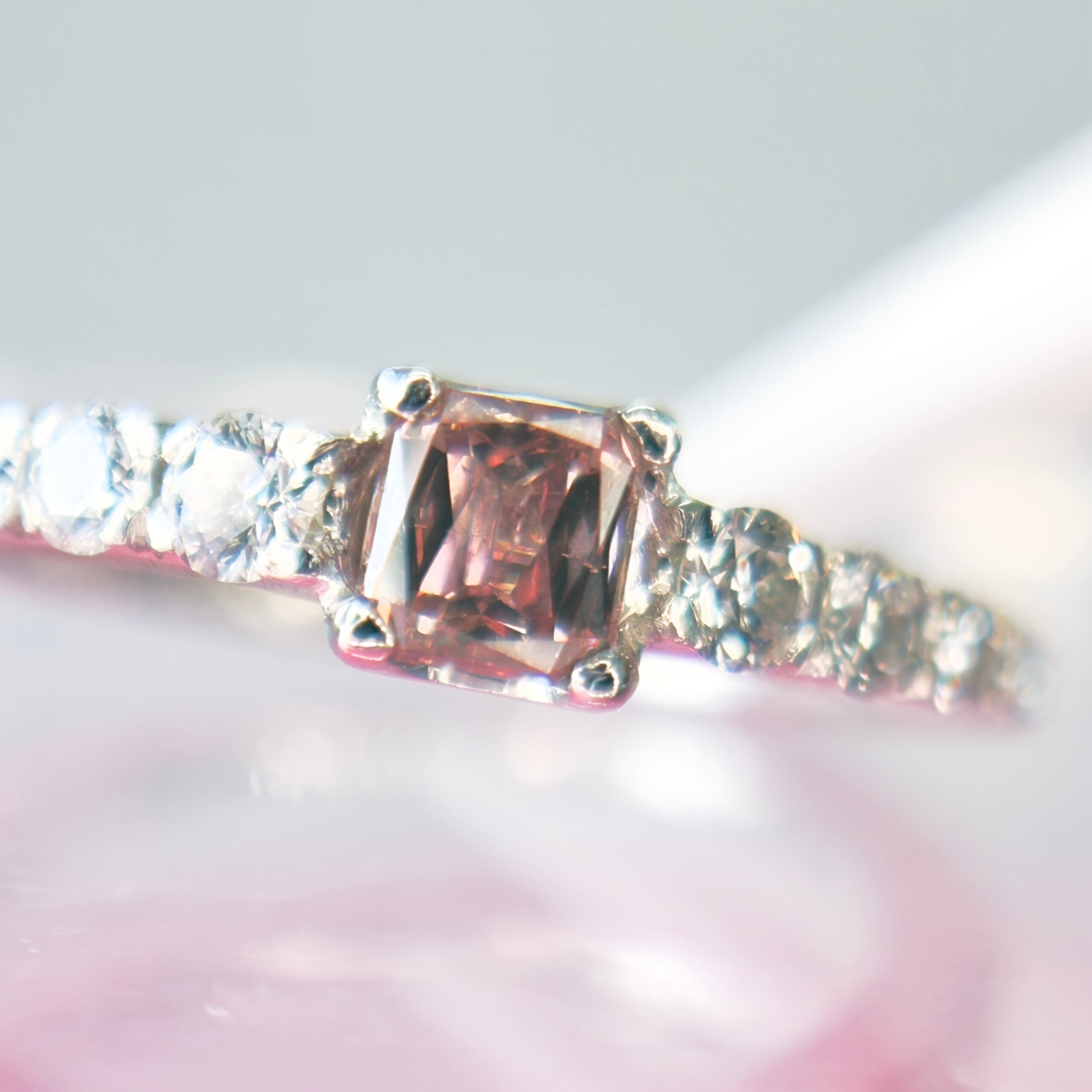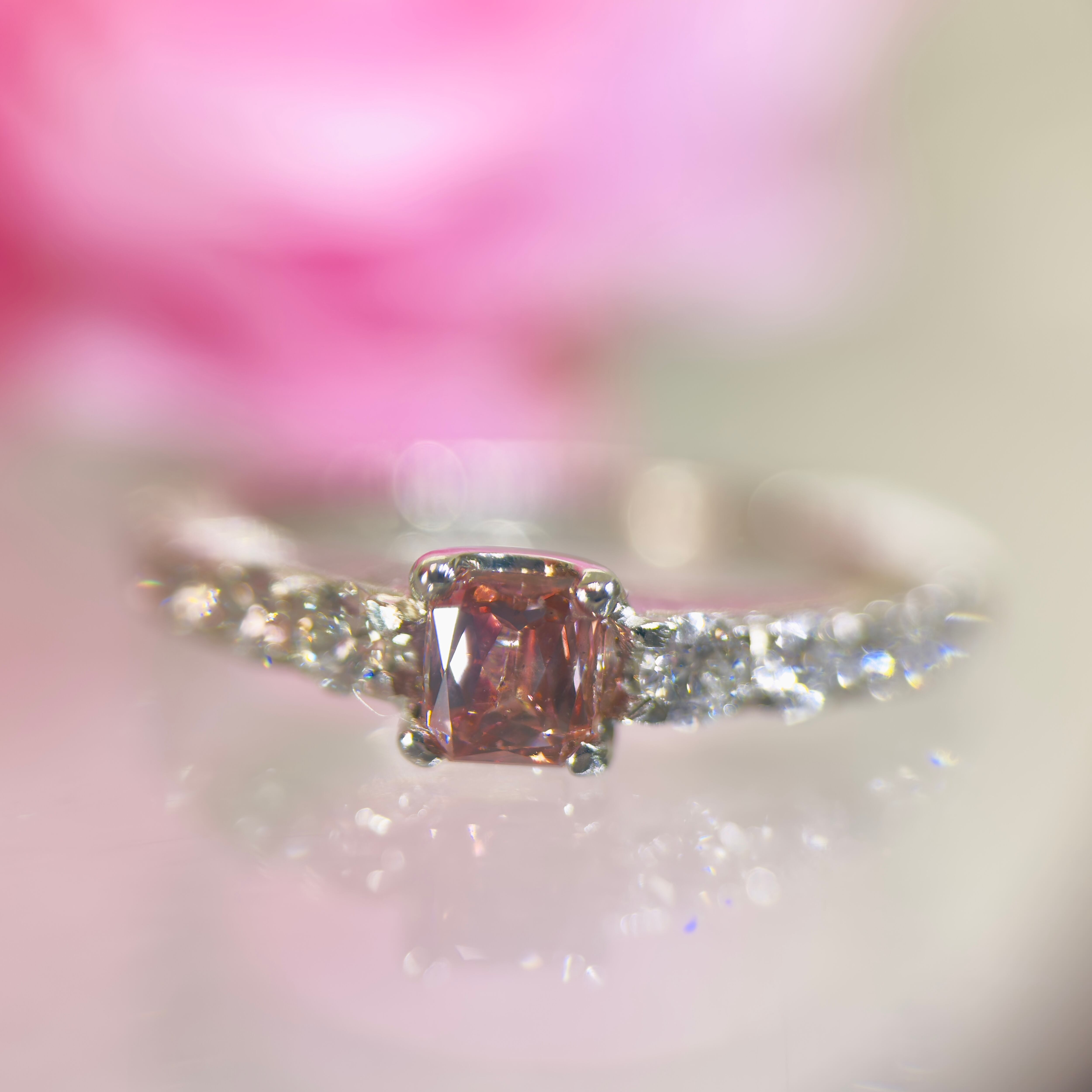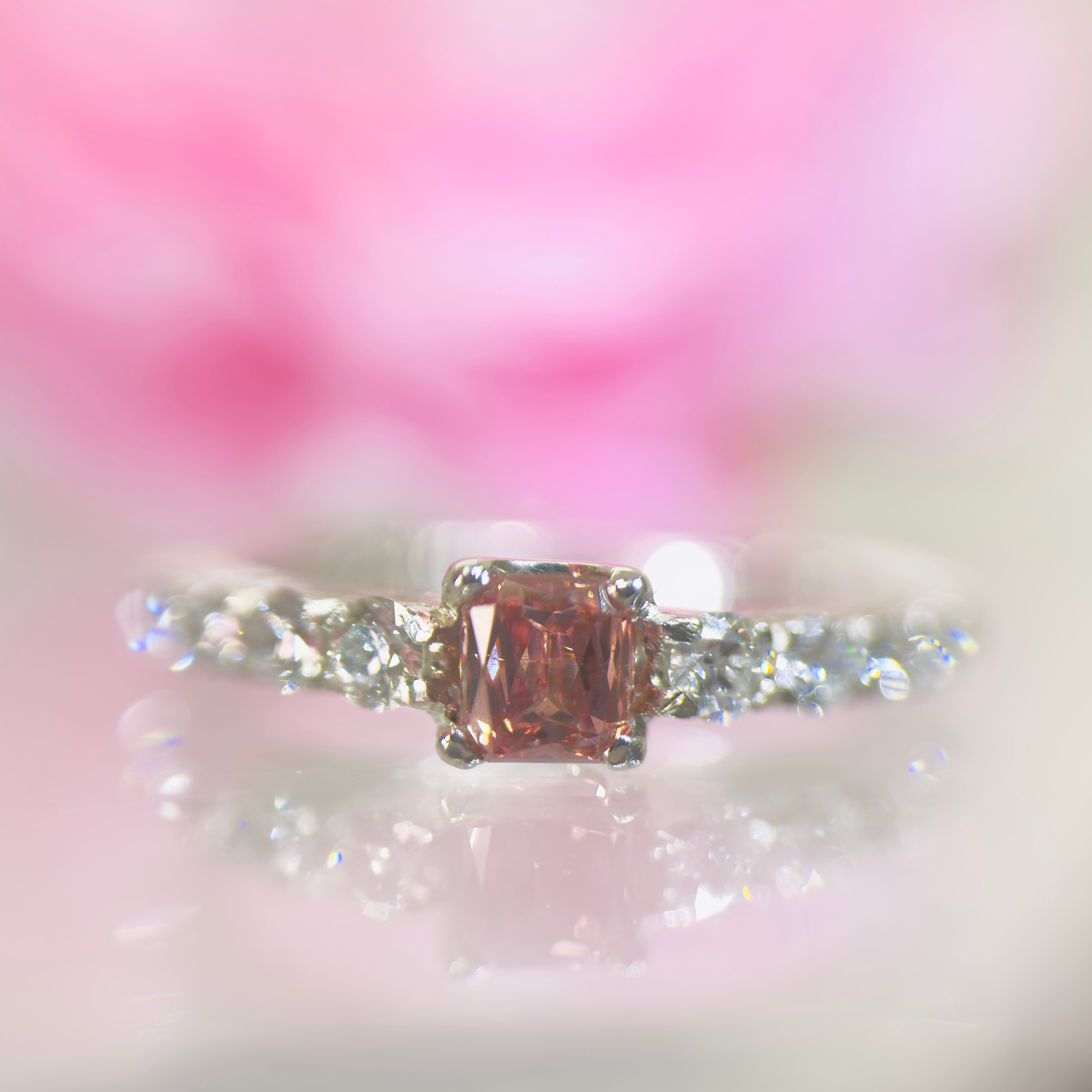 淡色のピンクダイヤとは一線を画し、遠目からでも視線を惹きつける、存在感あふれる美しい色合いです。