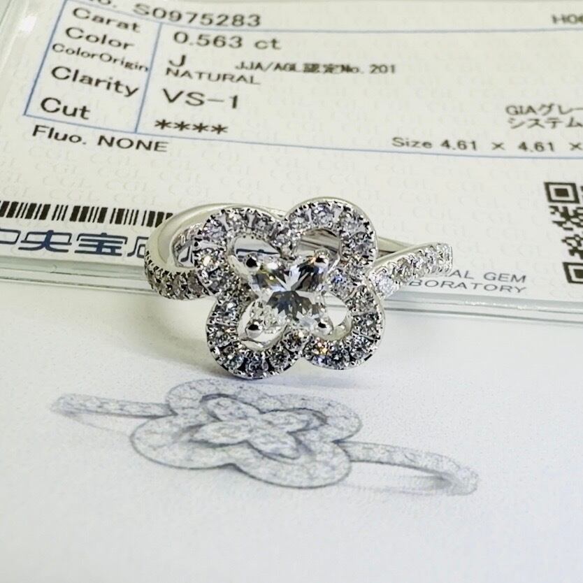 そんな稀少なリリーカットダイヤモンドに合わせ、オリジナルリングを作製しました。