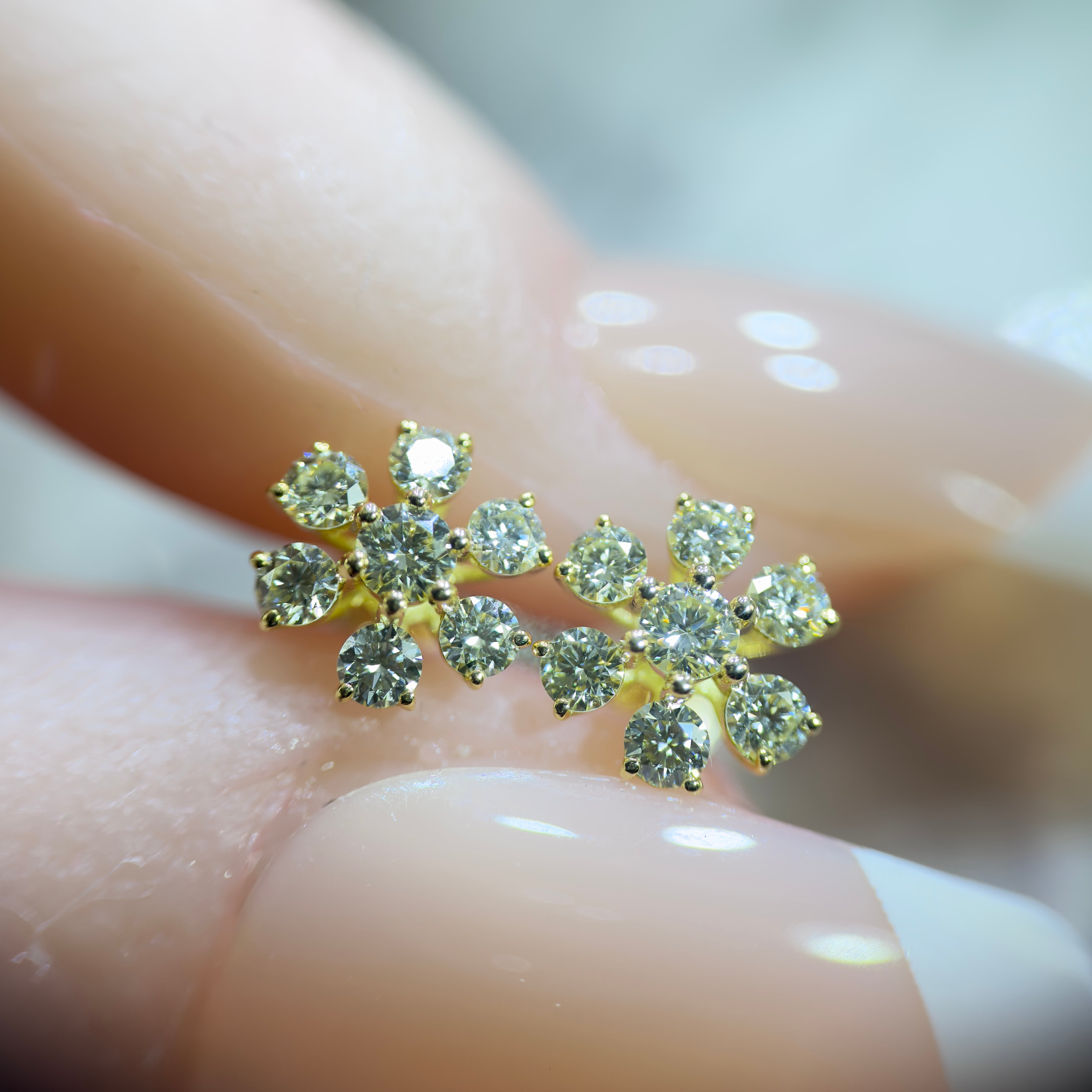 キラキラと華やかに輝く、フラワーモチーフのダイヤモンドピアスです。