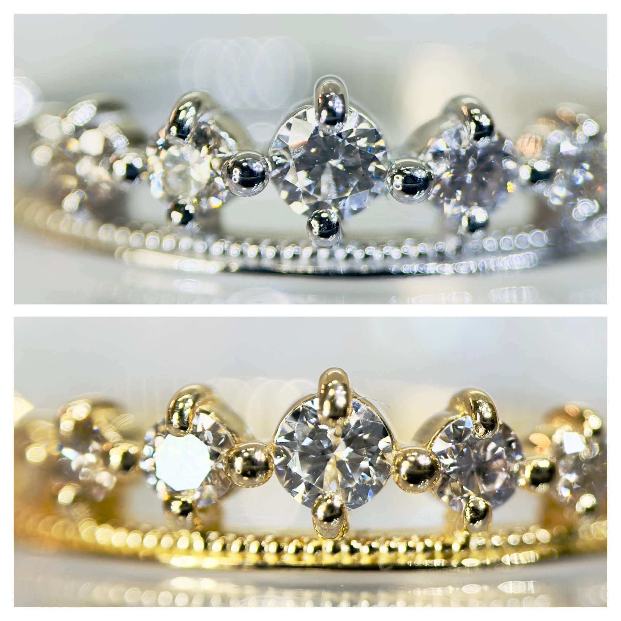 全てのダイヤがが無色透明で美しく、ダイヤ同士が競い合うように輝いています。