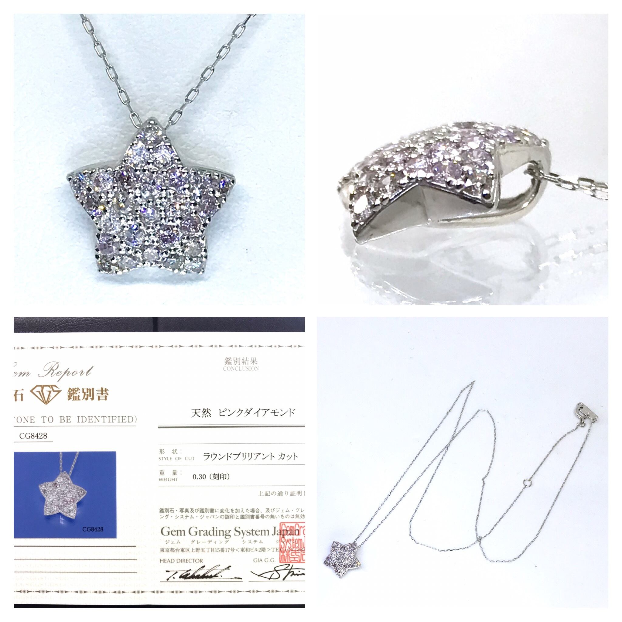 ★SALE★ピンクダイヤ!0.3カラット 鑑別書 星モチーフ WG製 ネックレス
