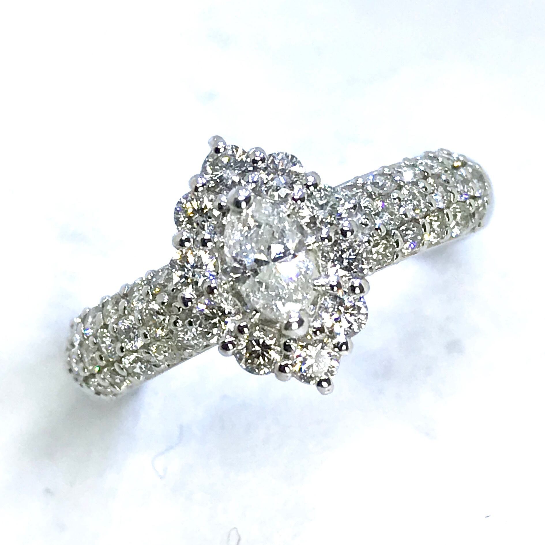 人気のパヴェセッティング、そして取り巻きデザインのプラチナリングです。