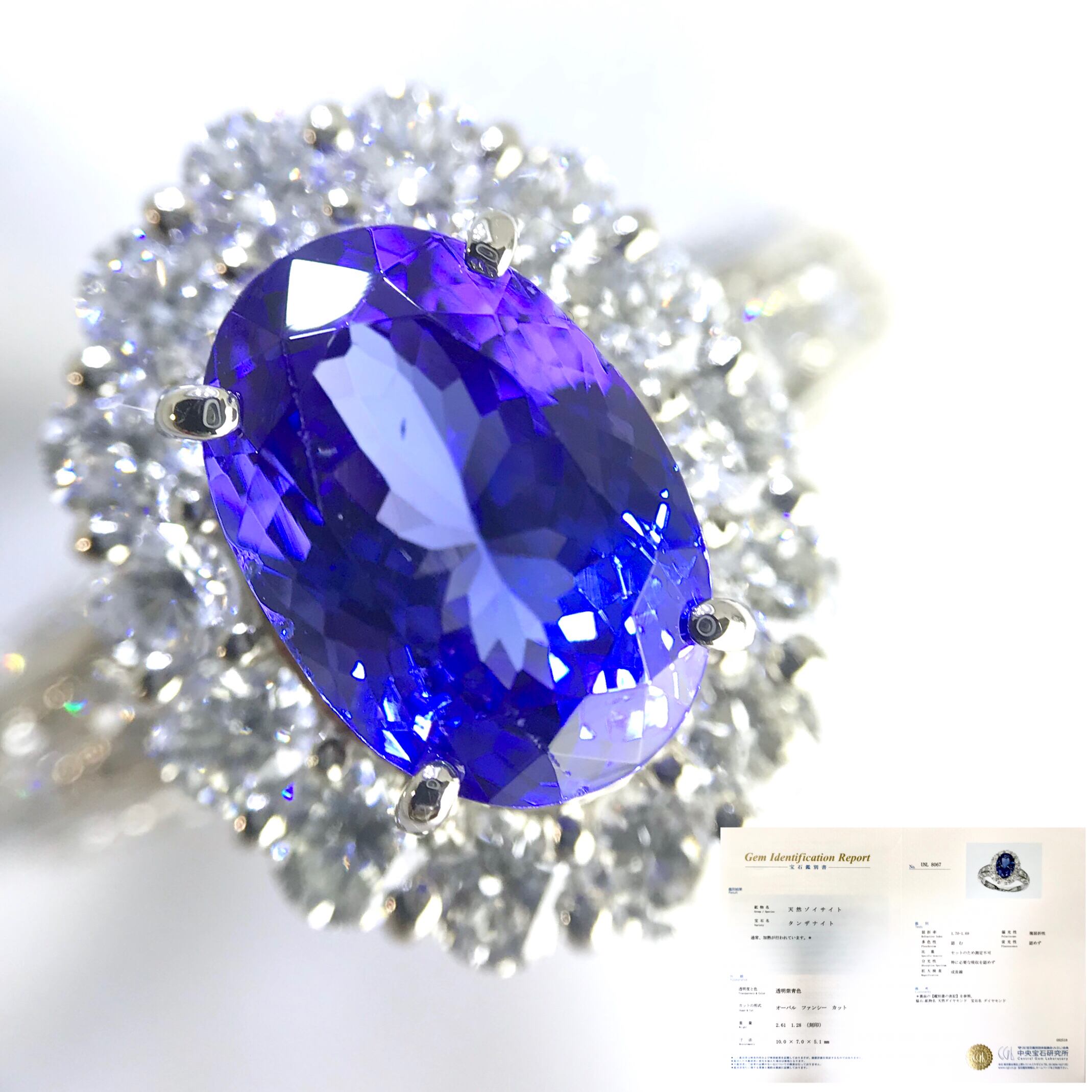 新品【タンザナイト】大粒2.61カラット!ダイヤ 1.28ct 鑑別書付きリング