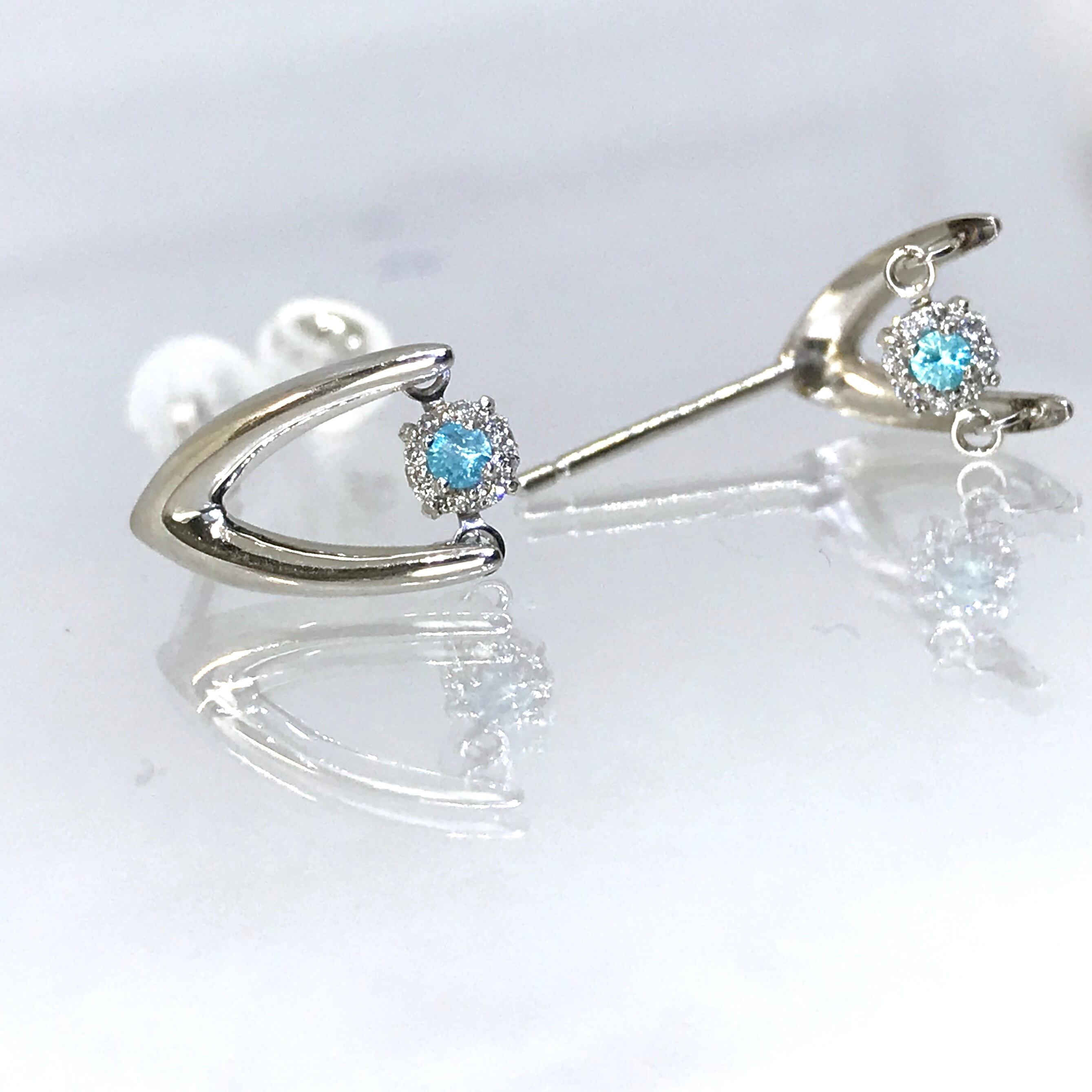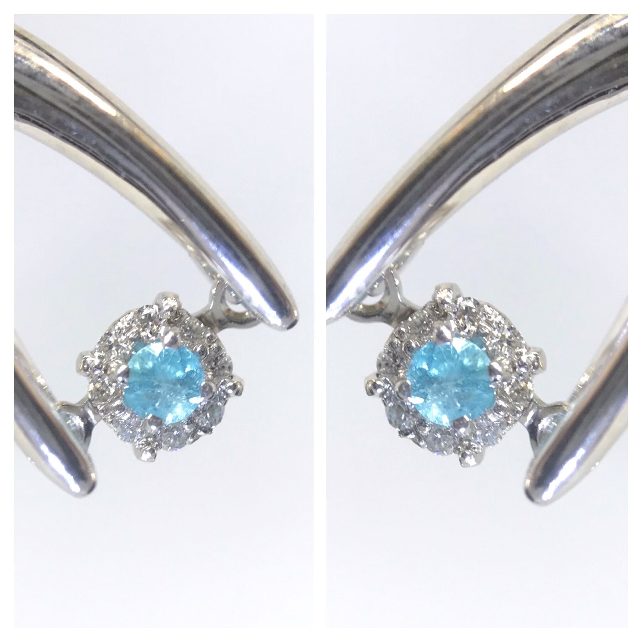 綺麗なパライバトルマリンを揃えた、ダンシングストーンデザインのピアスです。