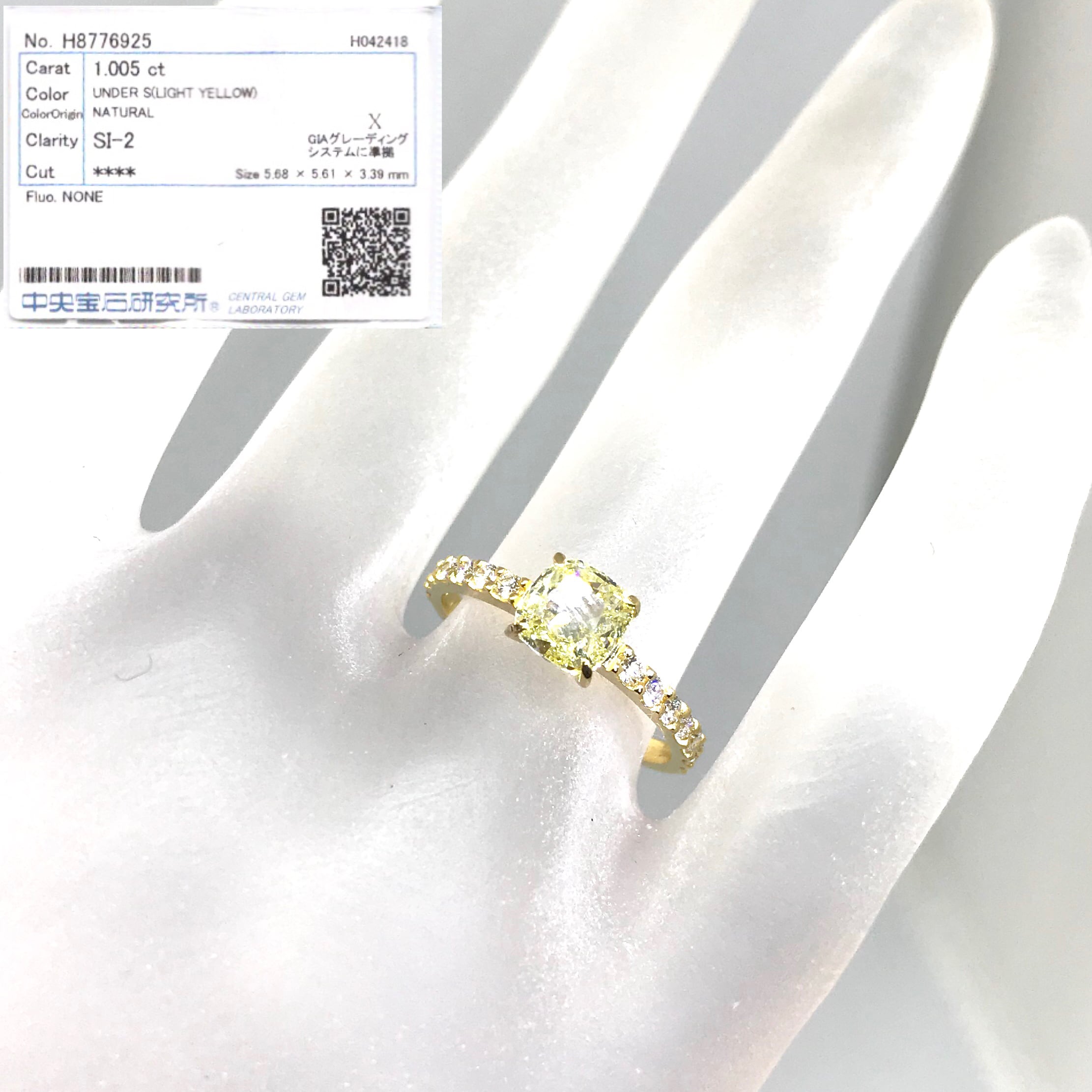 新品【1カラット】ダイヤモンド クッションカット SIクラス イエローダイヤ