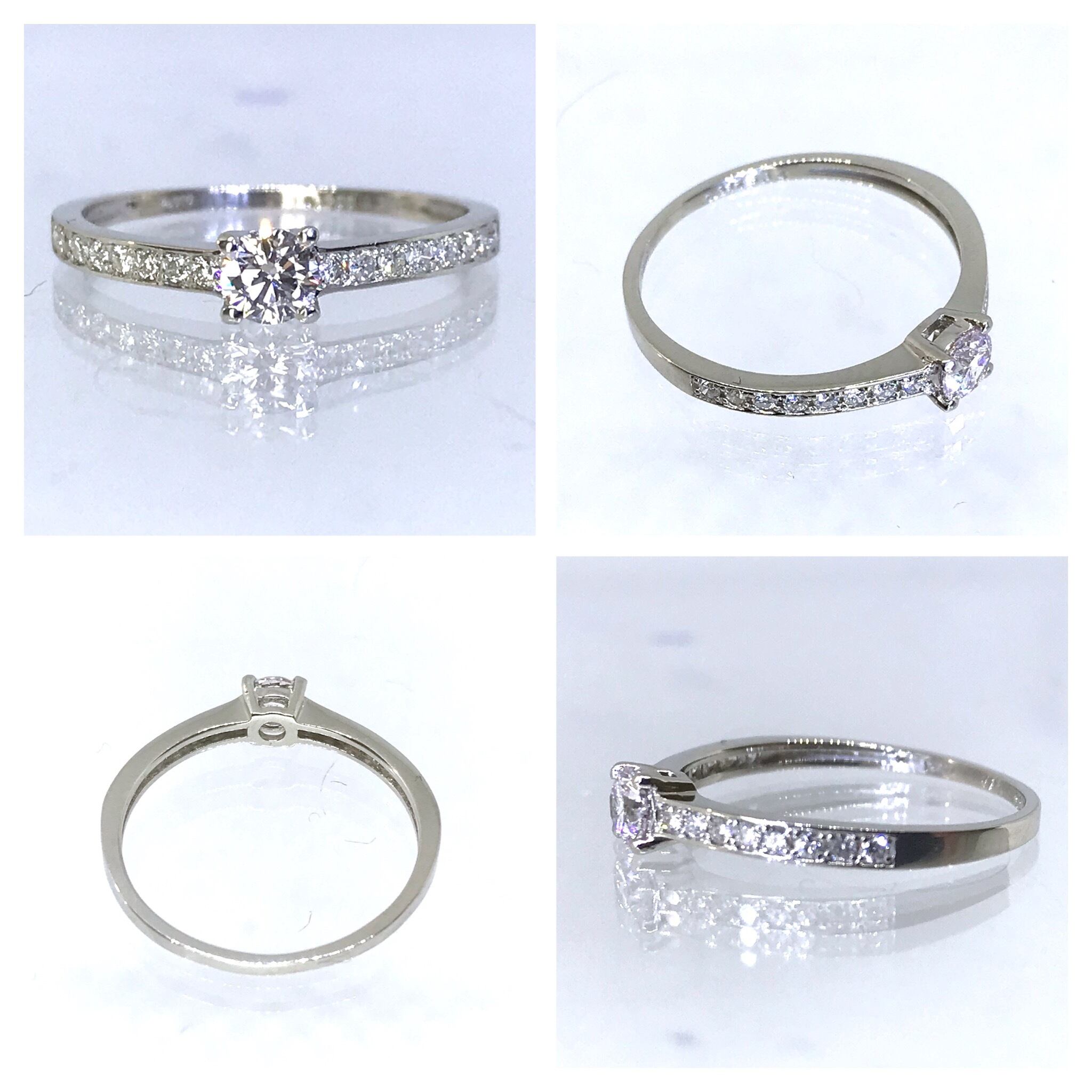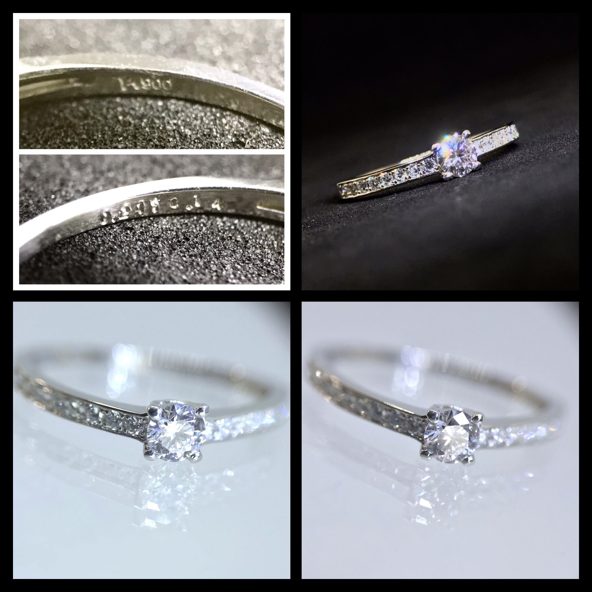 脇石にはFカラーSIクラスの綺麗なメレダイヤを彫り留めでセッティングし、美しいエタニティリングへ仕立てました。