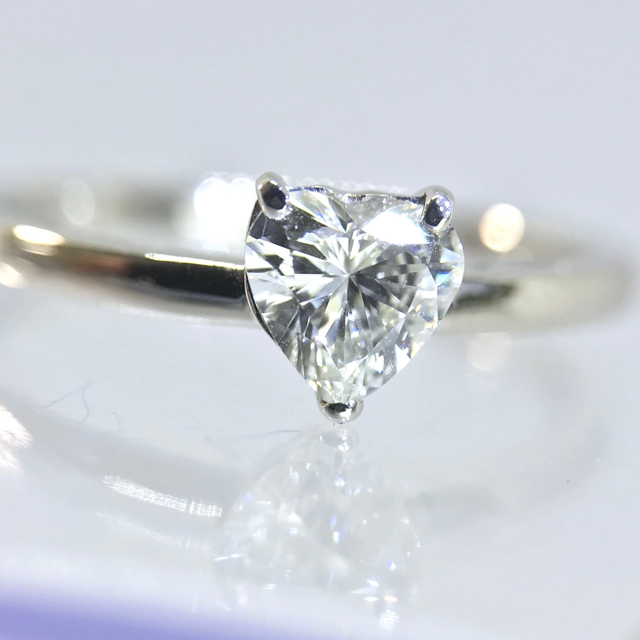 プロポーションにこだわったために、0.5カラットを僅かに下回ってしまいましたが、その分形が美しい、こだわりのハートダイヤ。