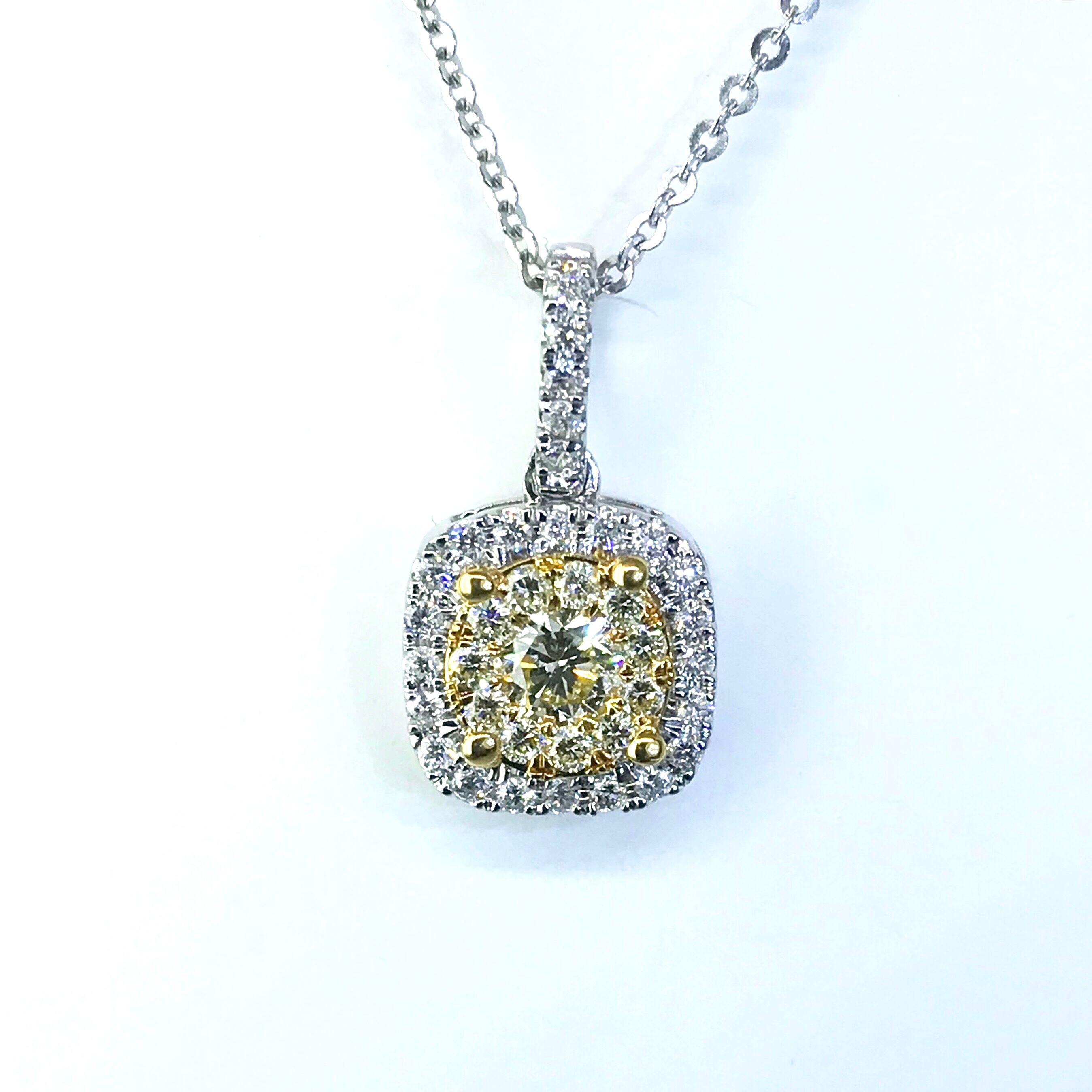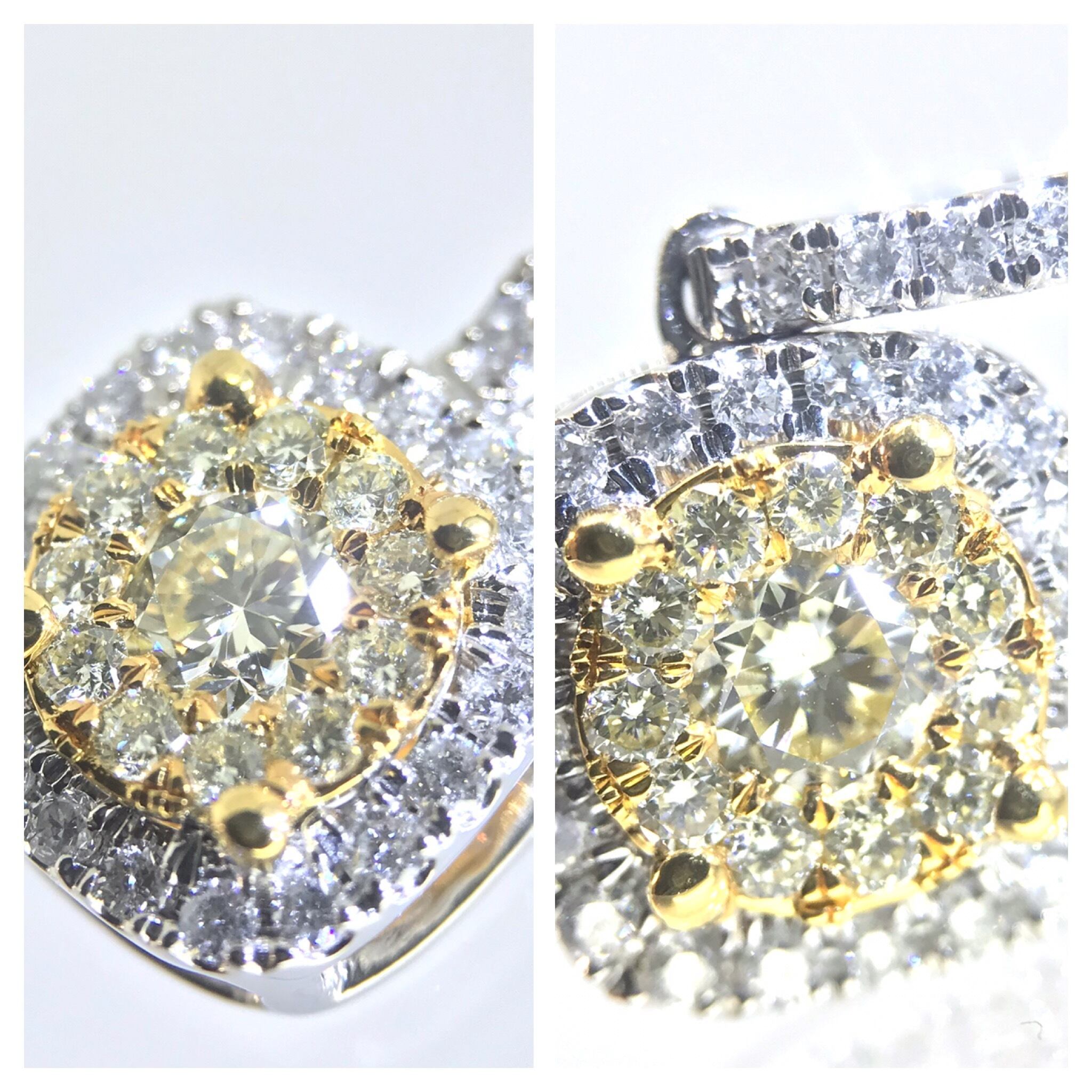 照りの良いイエローダイヤをセンターに、人気のデザインへ仕立てたネックレスです。