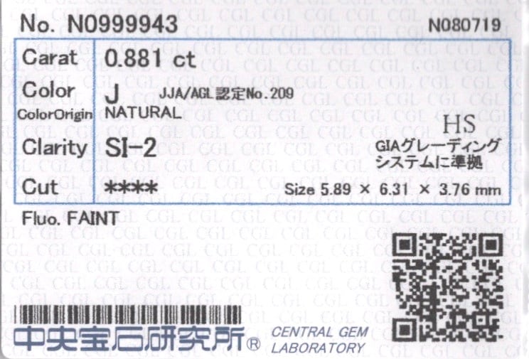 その大きさは0.881カラット。