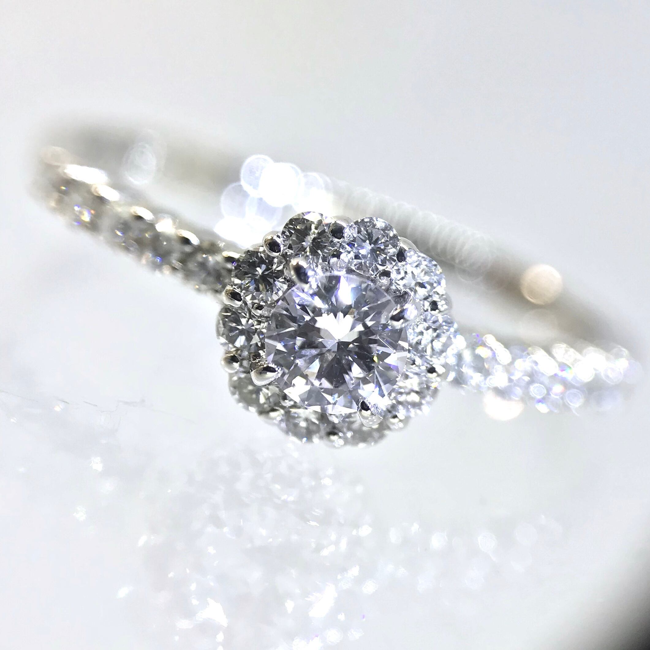 繊細なアームと、キュートな取り巻きダイヤがとても美しい、大人気のデザインです。
