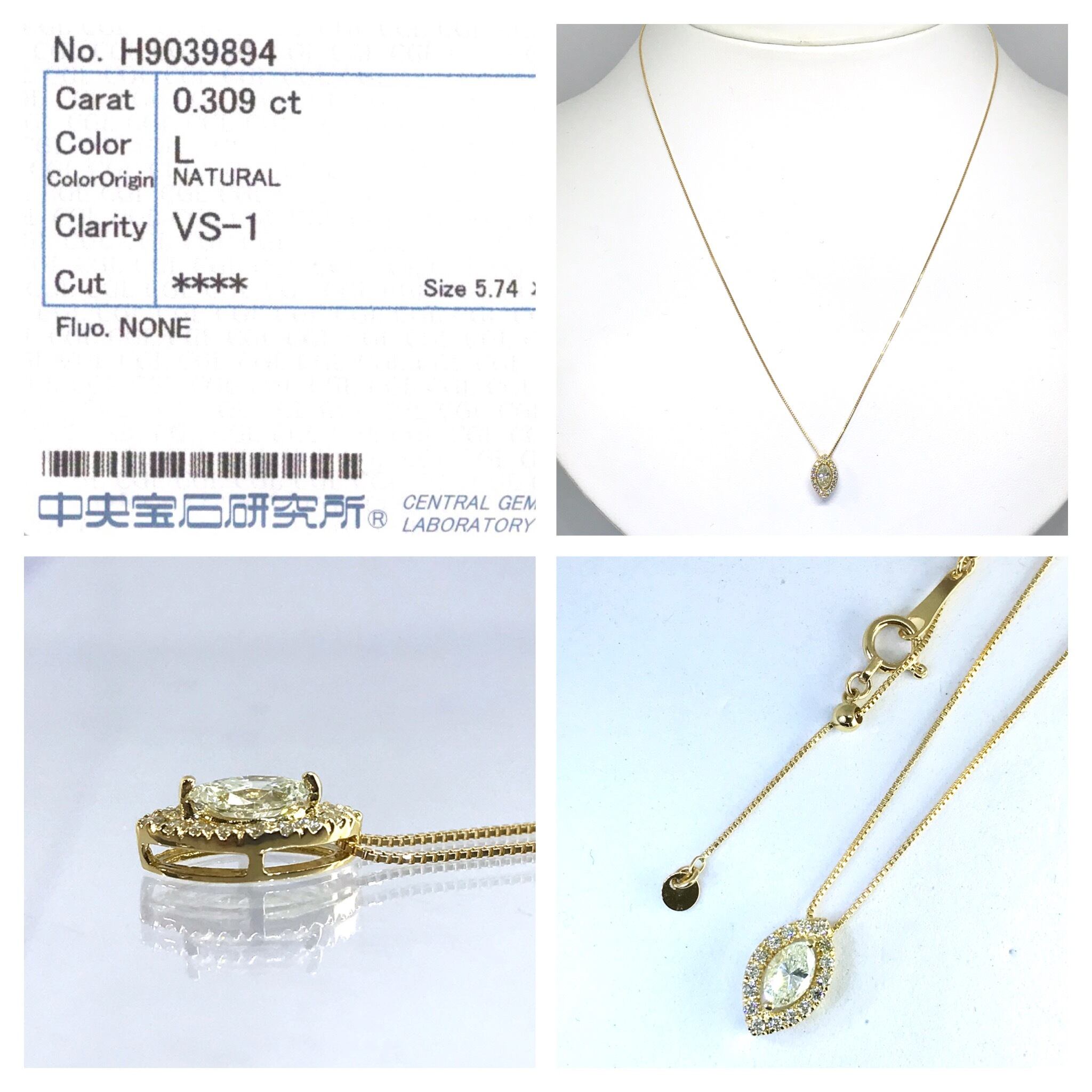 新品【VS1】0.3カラット 高品質ダイヤ マーキスカット プチネックレス