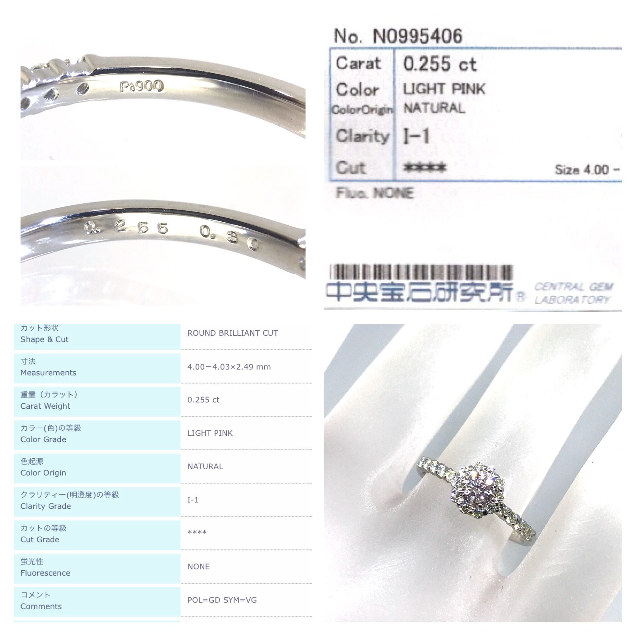 新品【ピンクダイヤ】大粒ライトピンク 鑑定済み 重ね付けにもオススメ!プラチナ製