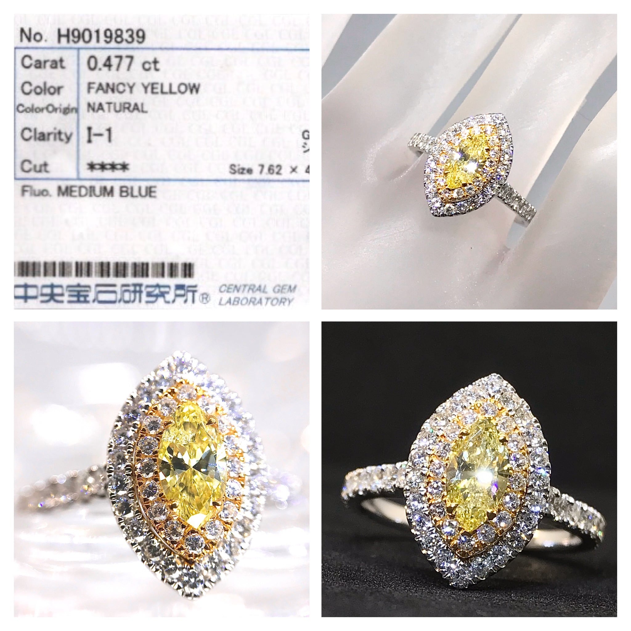 【中石4C】0.477ct FancyYellow I1 マーキス