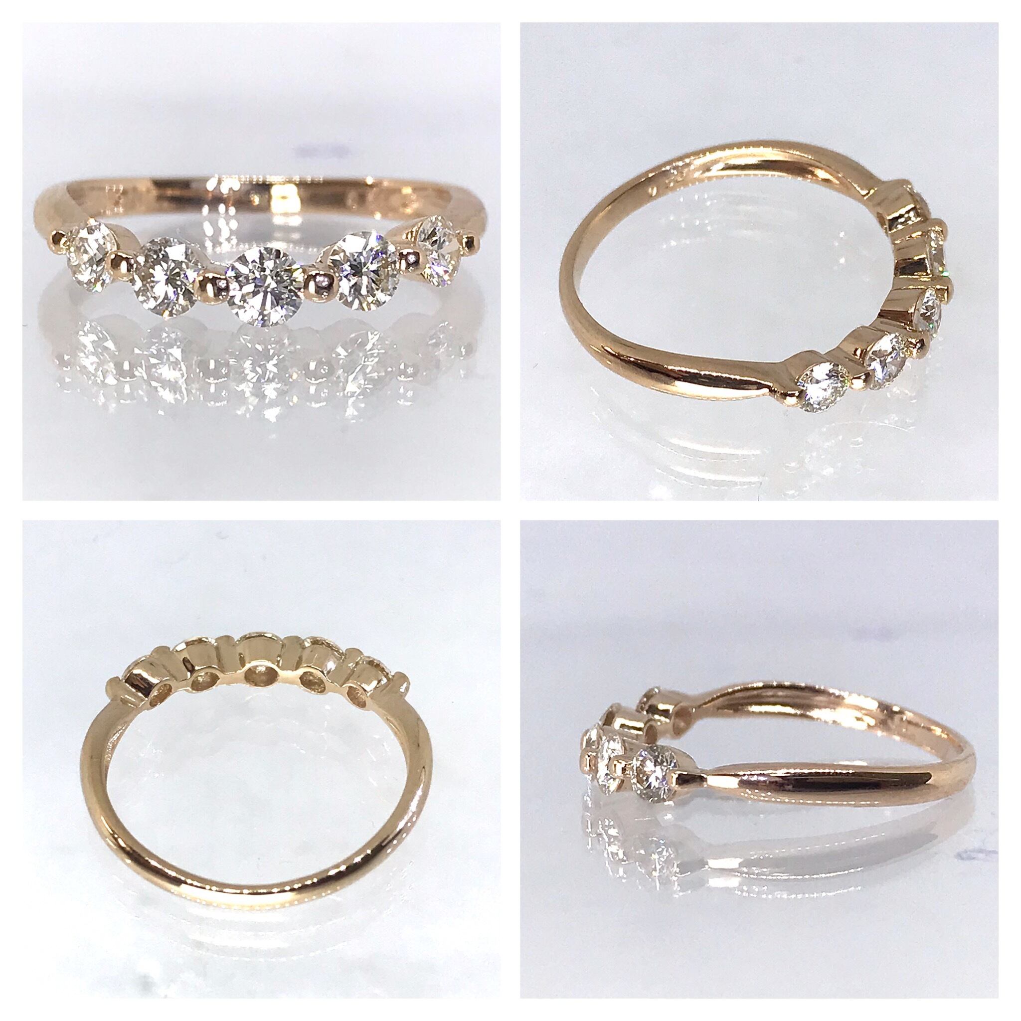 緩やかなカーブを描いたラインに並んだダイヤは、シンプルな爪に丁寧にセッティング。
