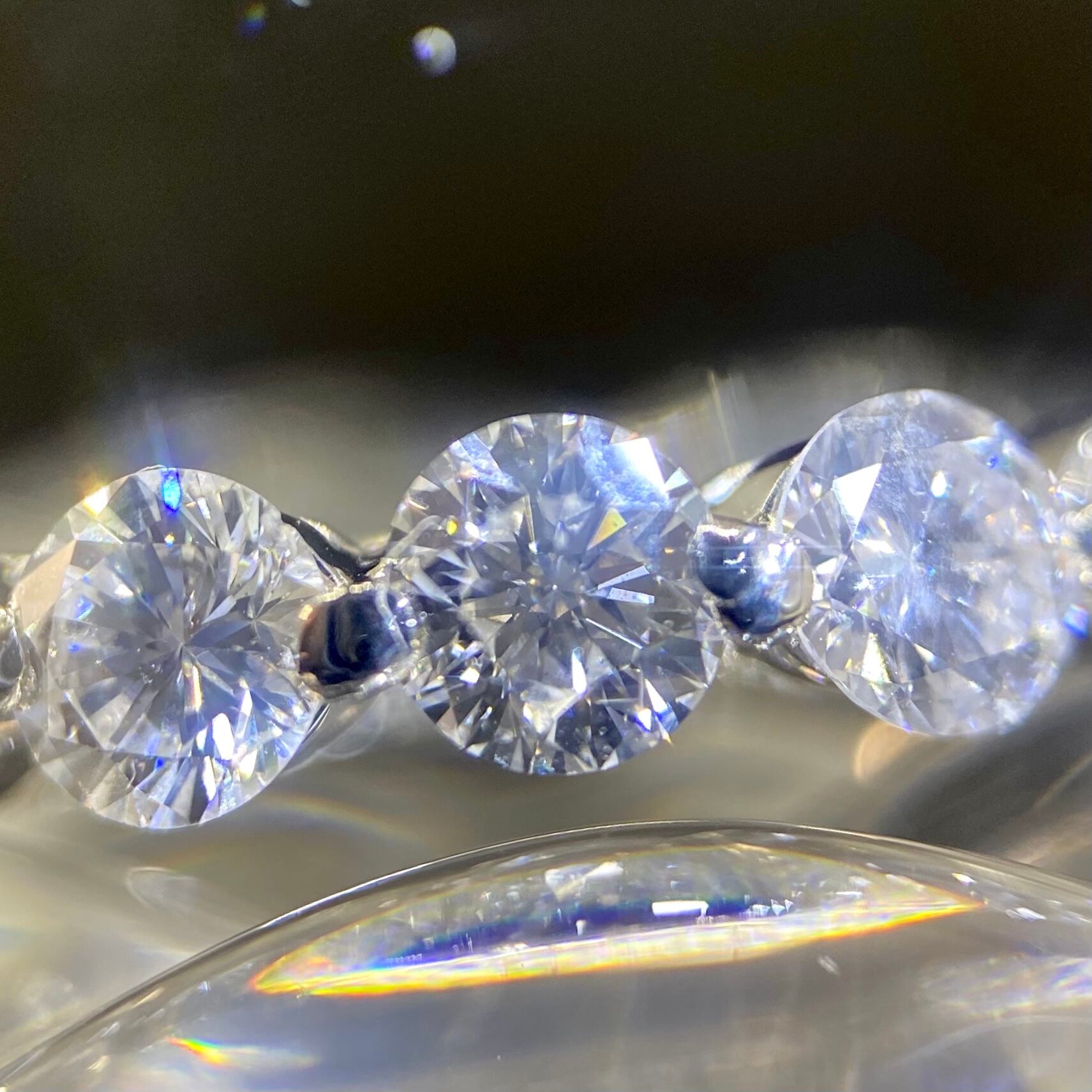 一粒一粒が大粒で、エクセレントクラスのダイヤを連ねたエタニティリング。