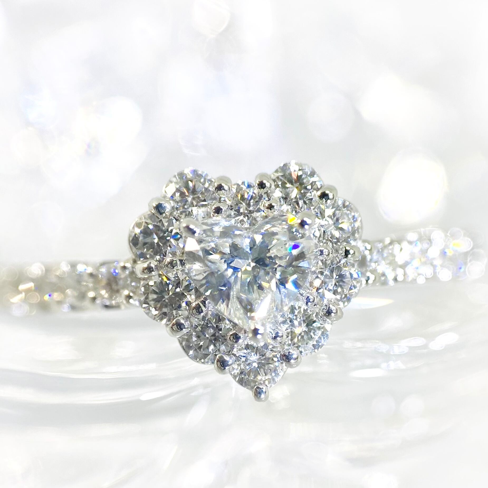 新品【ハートダイヤ】高品質SI2 美プロポーション!ラージメレ 取り巻き Pt製
