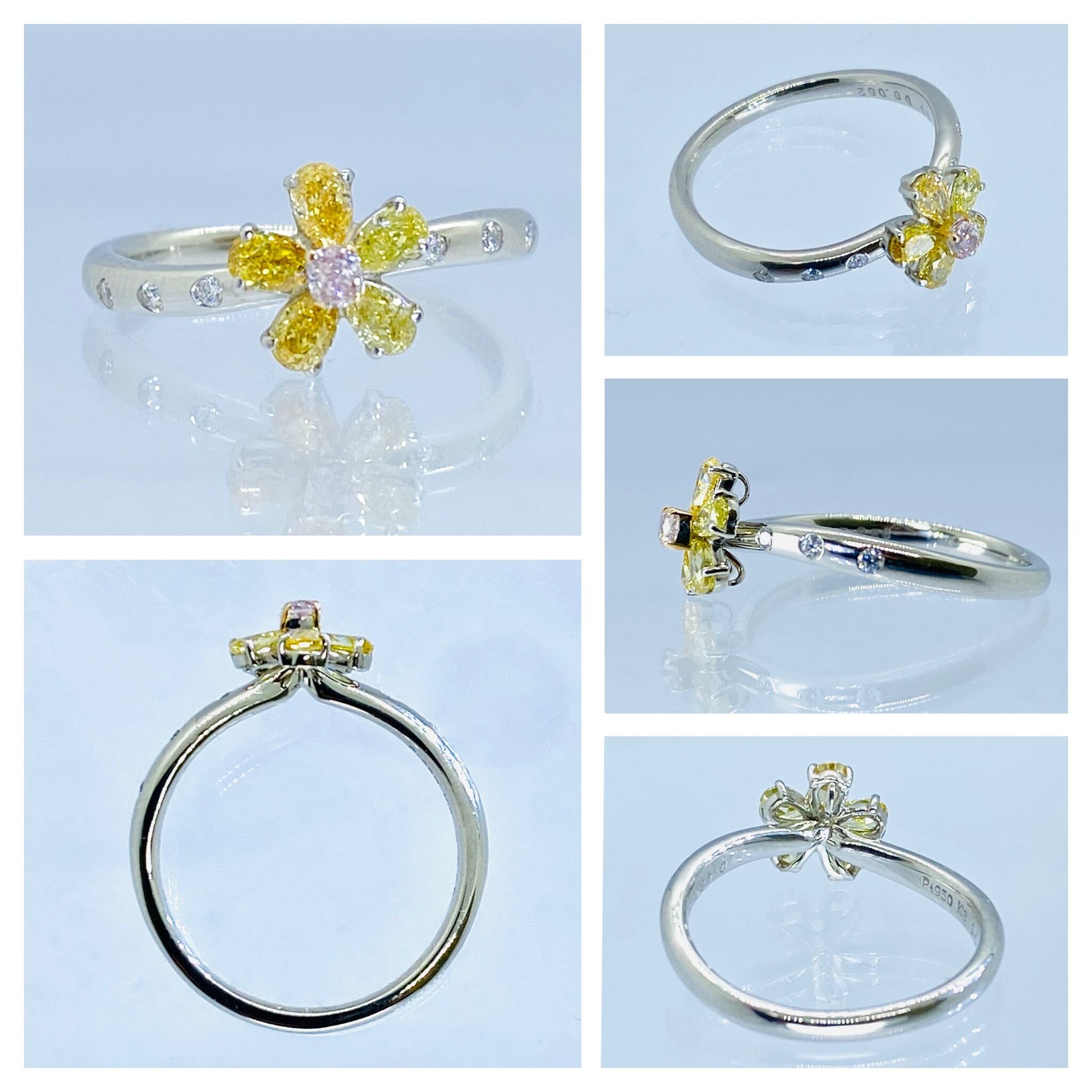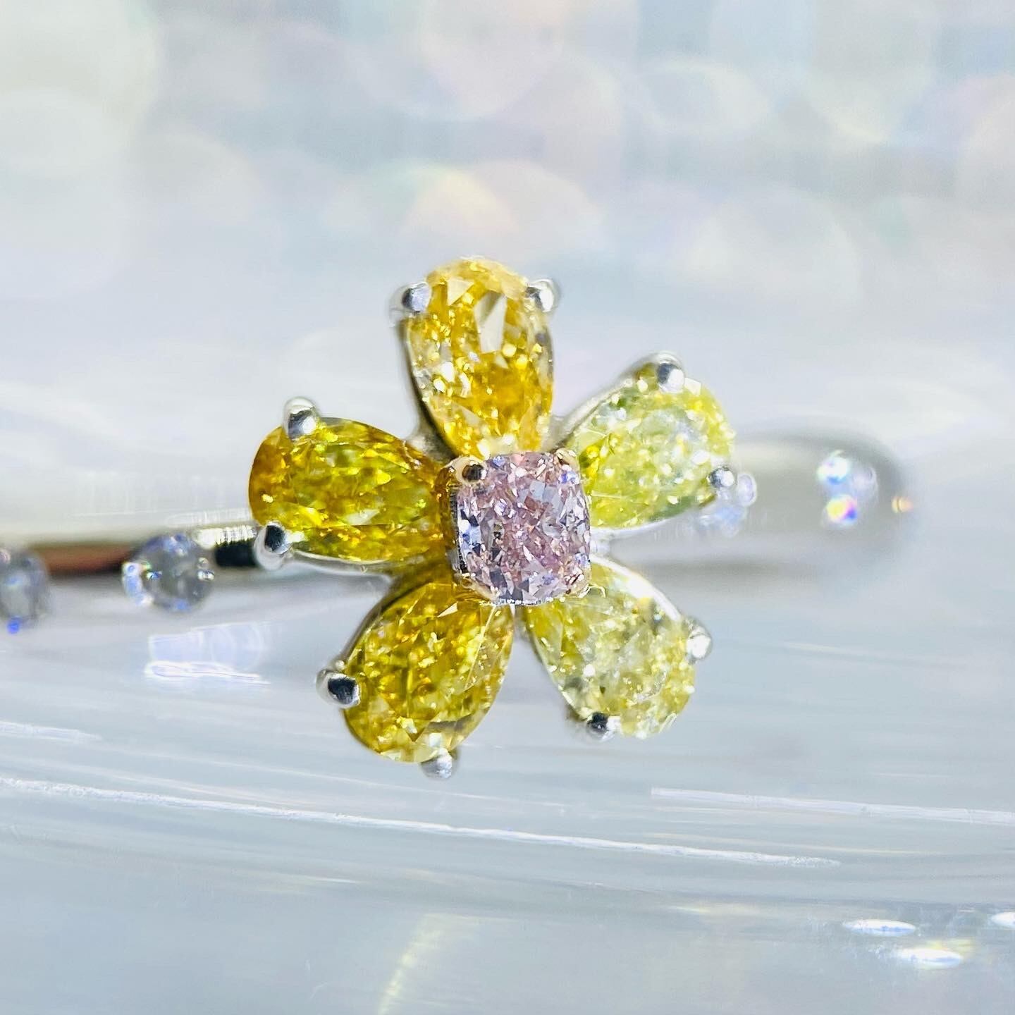 新品【ファンシーピンク】天然ピンクダイヤモンド&イエローダイヤ フラワーリング